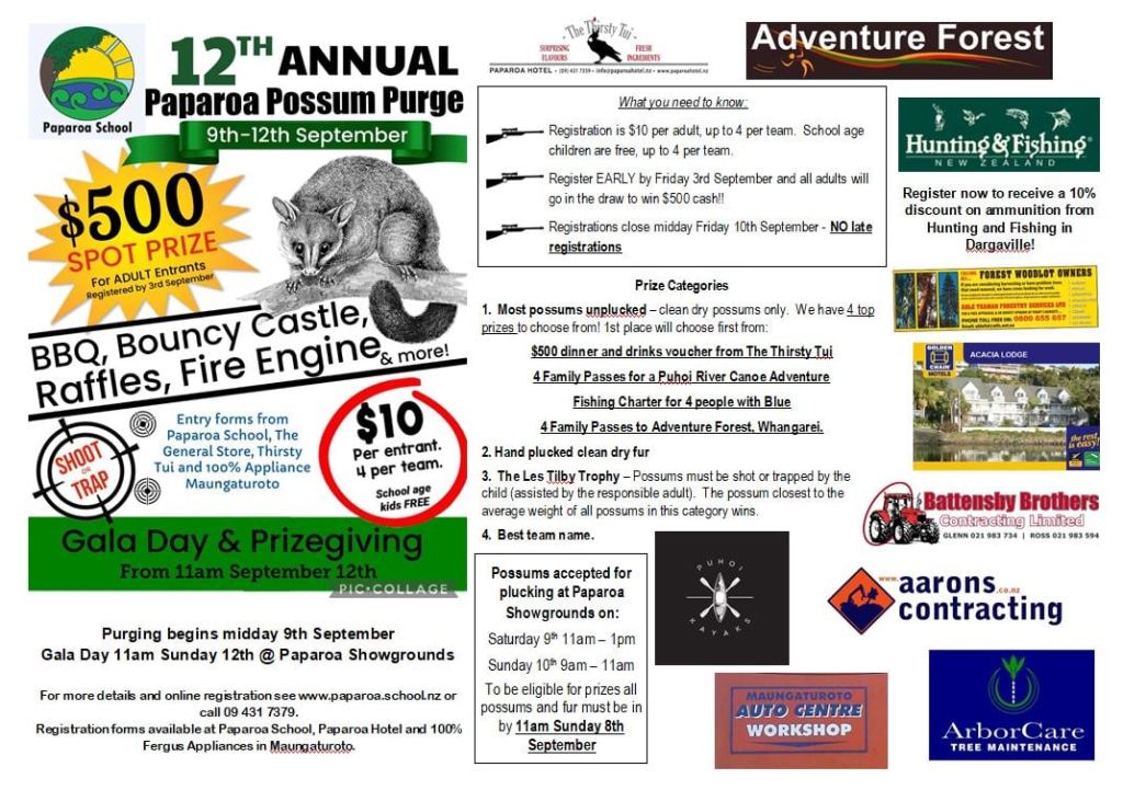 Every year, Paparoa School, an elementary school in Northland, New Zealand, runs a ‘Possum Purge’ fundraiser. The event, referred to as a ‘Gala Day’ is heralded as an opportunity for the community to come together and win some prizes. These prizes are given for various categories, including the most unplucked possums per team and the “Les Tilby Trophy”, which is awarded to a child who shoots or traps a possum with a specific weight, assuming they are “assisted by a responsible adult”. Due to COVID-19, their ‘purges’ for 2020 and 2021 were – thankfully – cancelled.