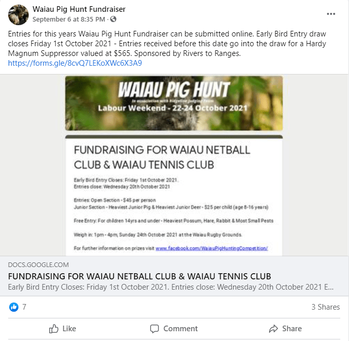 Source: (left) Waiau Pig Hunt Fundraiser Facebook Page